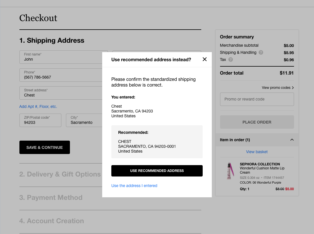 Sephora’s Address Validator 161 of 171 Address Validator Examples