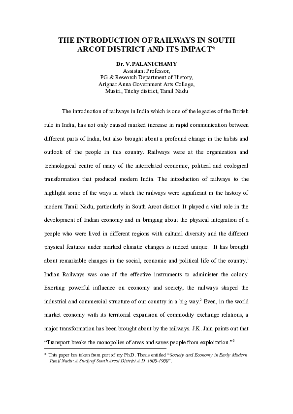 (PDF) THE INTRODUCTION OF RAILWAYS IN SOUTH ARCOT DISTRICT AND ITS