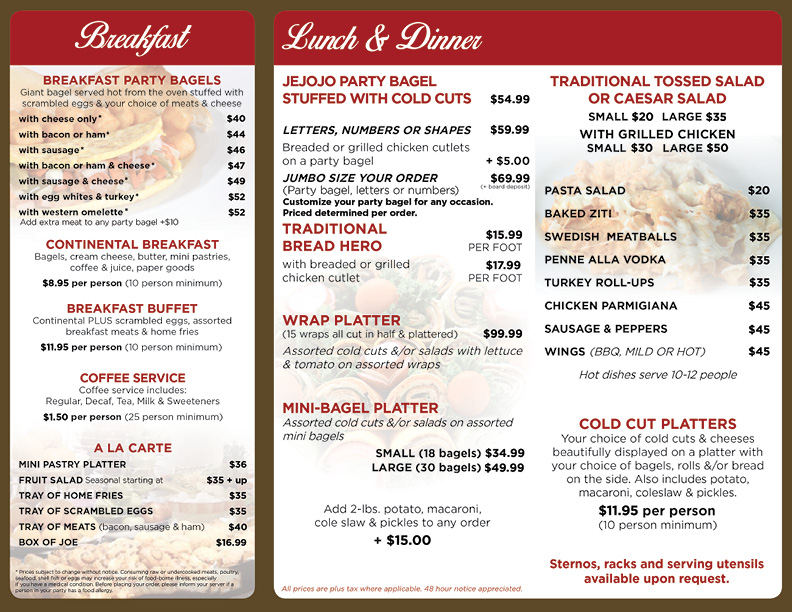 Boardwalk Bagel & Delicatessen menu in Atlantic Beach, New York, USA Bagels And Cakes Catering Menu breakfast, lunch & dinner | catering, take out, drop off, dine in, delivery | finger lakes, geneva, new york | seneca lake | small. bagel boss catering is available nationwide for celebrations, shivas and beyond. one dozen of fill a bagel’s freshly baked sliced regular sized bagels, served with 2 gourmet homemade cream cheeses &. ( and. Bagels And Cakes Catering Menu.