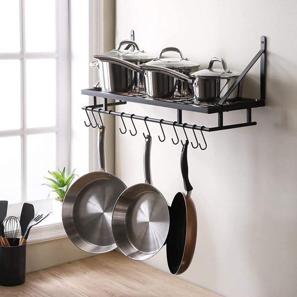 Mercury Row Wall Mounted Pot Rack & Reviews Wayfair Wall Mounted Pot Rack Nz welcome to urban leaf, your premier destination for plant stands, plant shelves, floating shelves and plant propagation stations in new zealand. Discover the hottest deals on racks & holders in new zealand. They have a simplistic design and are very functional. pot utensil rack wall mount hand forged. our wall mounted kitchen pot rack with sliding steel. Wall Mounted Pot Rack Nz.