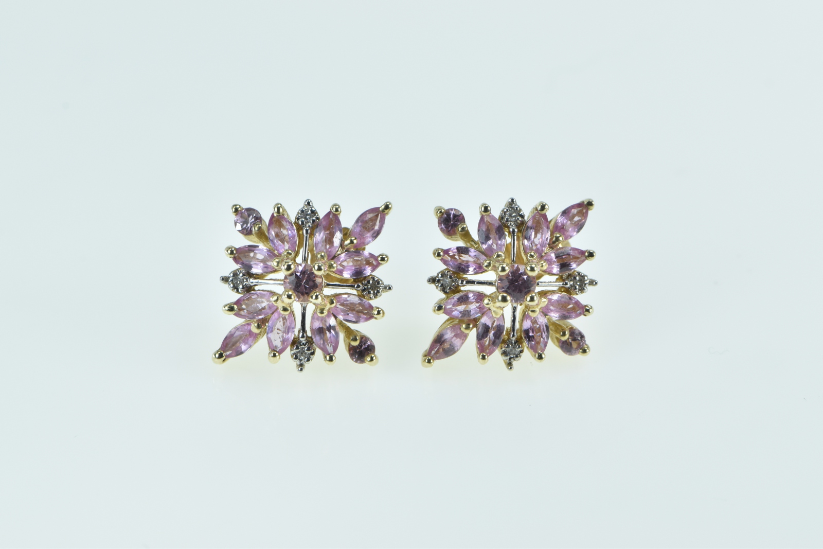 10K Pink Topaz Diamond Squared Statement Stud Yellow Gold Earrings Property Room