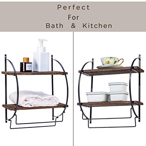 Y&ME 2 Tier Floating Bathroom Shelves with Towel Rack, Bathroom Shelves
