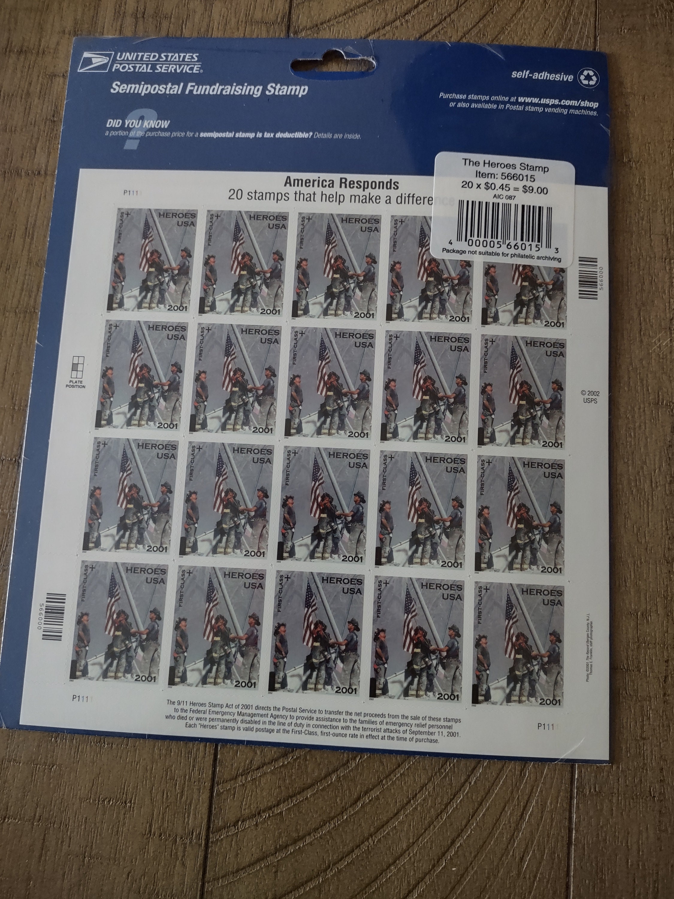 MNH America Responds 9/11 Heroes, Full Sheet of 20 Stamps, USA 2001 America Responds Stamps Value Heroes of 2001 ~ america responds ~ 9/11#b2 plate block of 4 x 34ยข us postage stamps. ๐ the stamp artwork was. Mint, never hinged, fantastic color and fine centering on this beautiful single. Stuart katz stamps & coins. 9/11 heroes sheet of twenty 45 cent postage stamps scott b2. Helping to identify your stamps, find out their value and. America Responds Stamps Value.