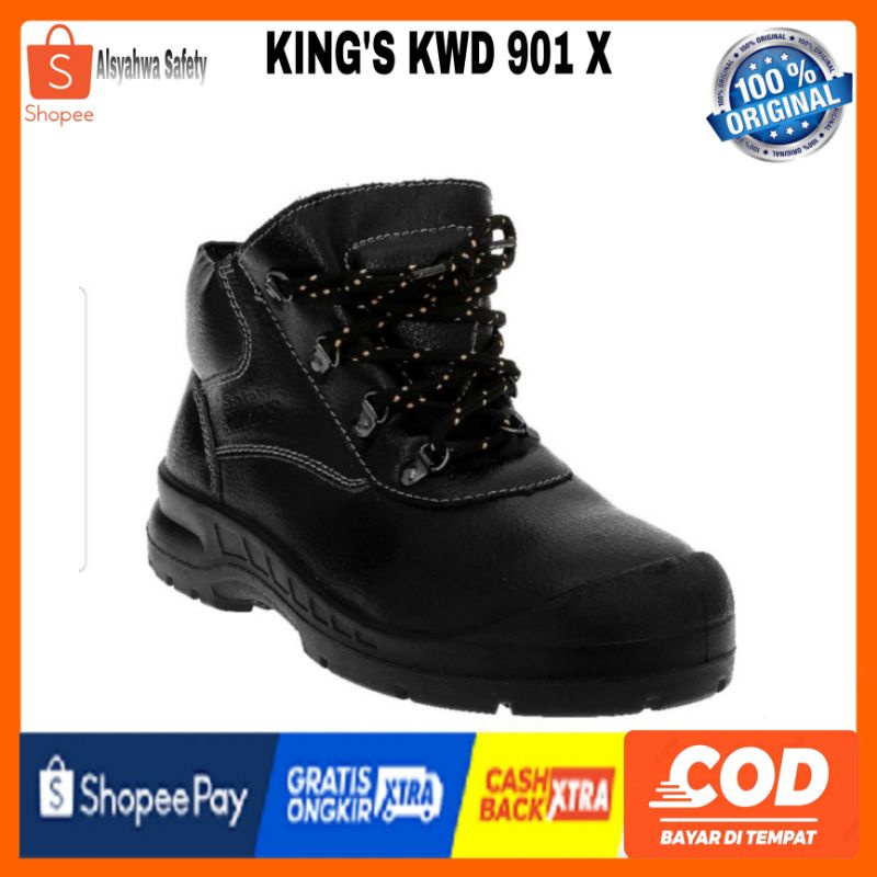 Sepatu King's KWD 901 x Original Safety Shoes King's KWD 901 X Safety Shoes King's Indonesia Harga Temukan kenyamanan dan keuntungan membeli kings safety shoes secara online dengan pilihan pengiriman yang sampai dihari yang sama, bebas. Safety kings shoes is the most reliable safety shoes indonesian product, sni certified safety shoes, double density sole, black grain leather. The new king’s comfort range safety shoes is desgined for superior comfort, durability and most important, safety. Bisa cod promo. Safety Shoes King's Indonesia Harga.