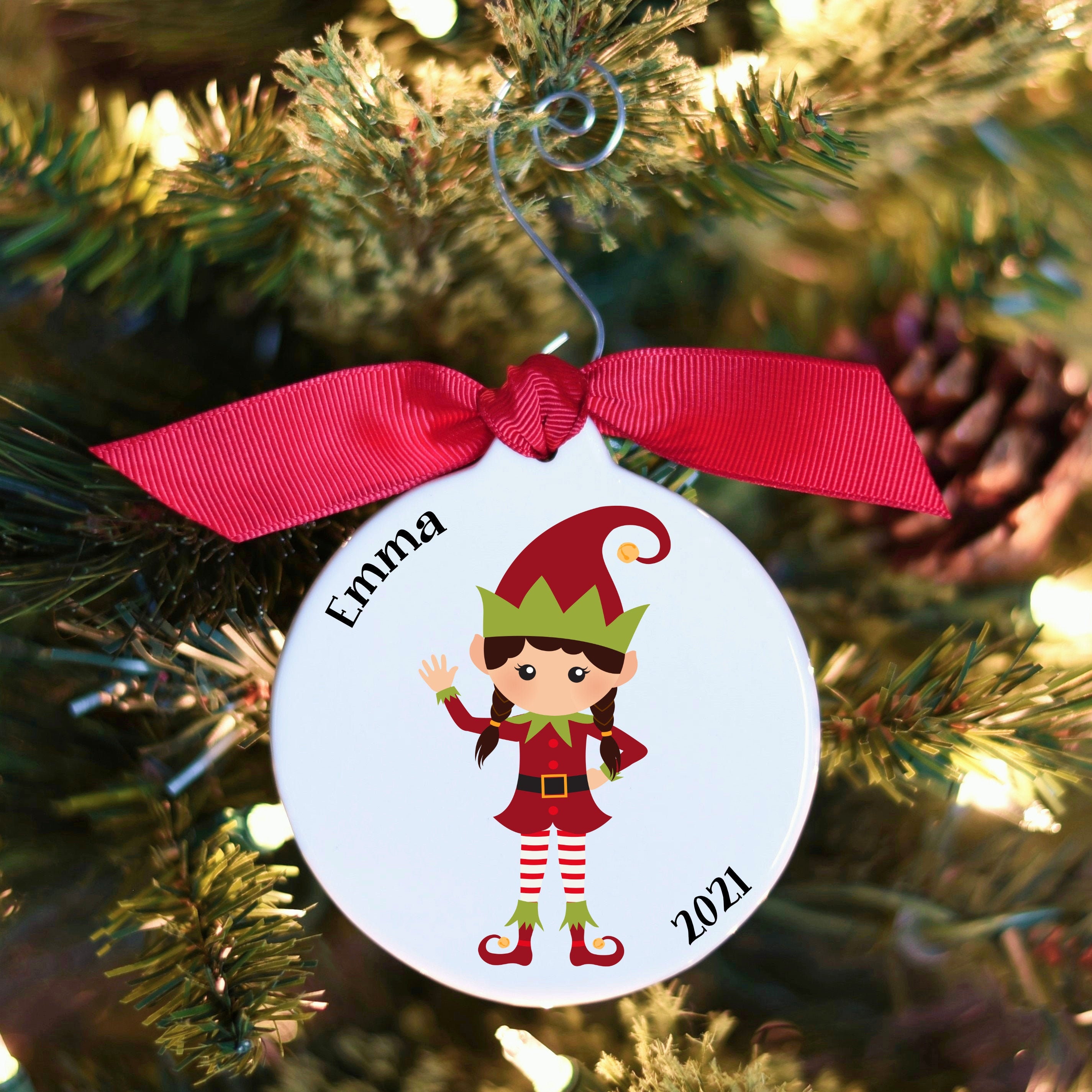 Baby Girl First Christmas Ornament Personalized Elf Girl Etsy