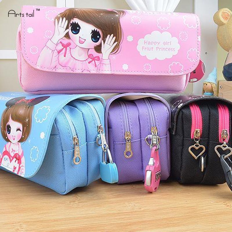Cute School Pencil Case With Lock PU Korean Stationery Accories School