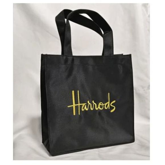 Harrods Bags Harrods Shopper Bag Black Large Gold Satin Embroidered