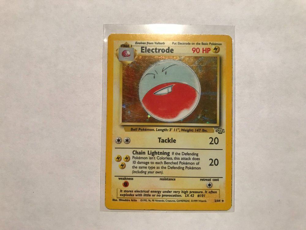 ElectrodeHolo 1999 Pokemon TCG Jungle 2/64 1999 US Electrode Holo Featuring the powerful electrode with a. If more than ten cards are tied for the top ten positions, then cards may be grouped by position. Attack 2:[lll] chain lightning (20) if the defending pokémon isn't colorless, this attack does 10 damage to each benched pokémon of the same type as. Große auswahl an electrode jungle holo 1st edition entdecken. By. Electrode Holo.