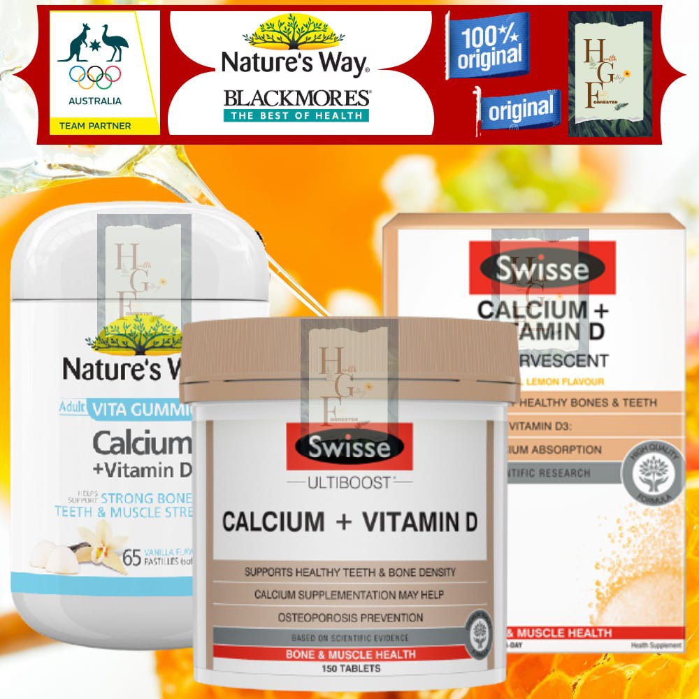 Swisse Calcium + Vitamin D 150 Tabs , Effervescent & Nature's Way Vita