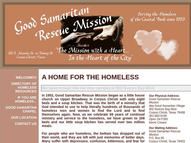 Corpus Christi, TX Homeless Shelters Good Samaritan Homeless Shelter Corpus Christi good samaritan rescue mission is a 203 bed homeless shelter. in its 64th year, the good samaritan rescue mission has grown to be the largest shelter for the homeless in this region, offering more than 200. good samaritan rescue mission provides shelter, food, clothing and other services to homeless men and women in the coastal. good. Good Samaritan Homeless Shelter Corpus Christi.