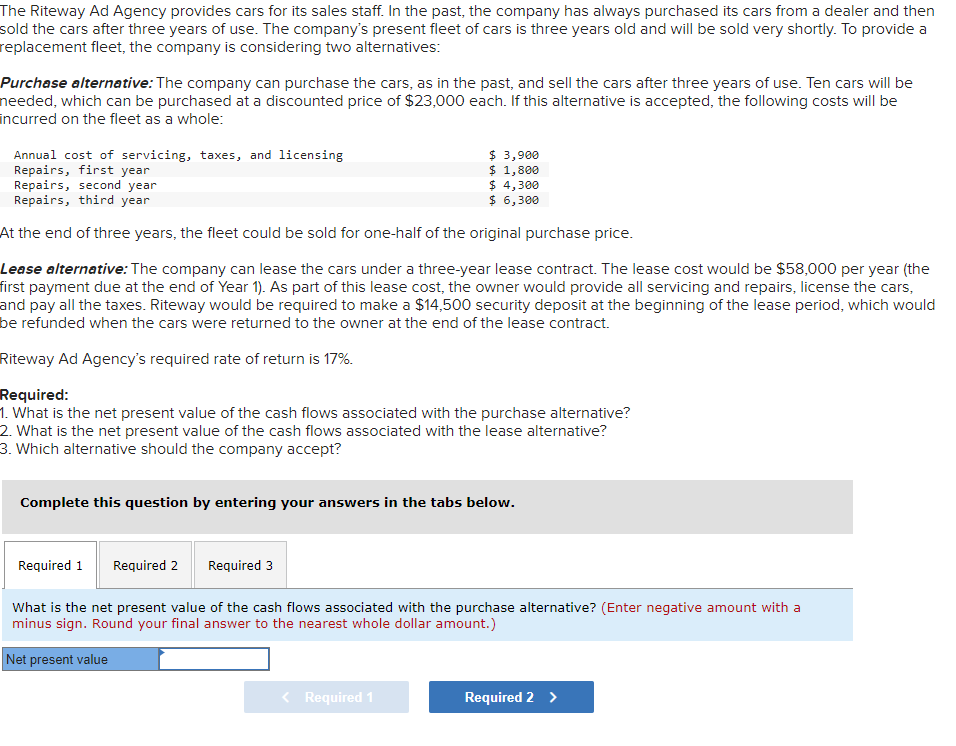 Solved The Riteway Ad Agency provides cars for its sales