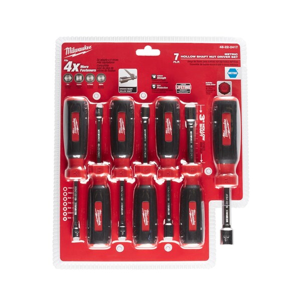 Milwaukee Metric Hollow Shaft Nut Driver Set (7Piece)48222417 The Shaft Metric Nut Driver Set Hollow shaft lets you remove nuts from protruding bolts ; Hollow shaft metric nut driver set, 7 piece ; Nut drivers are standard length for most applications and fit over long bolts and studs. Tool set includes metric nut driver sizes 5, 5.5, 6, 7, 8, 9, and 10mm. Nut drivers are standard length for most applications and fit over. Shaft Metric Nut Driver Set.