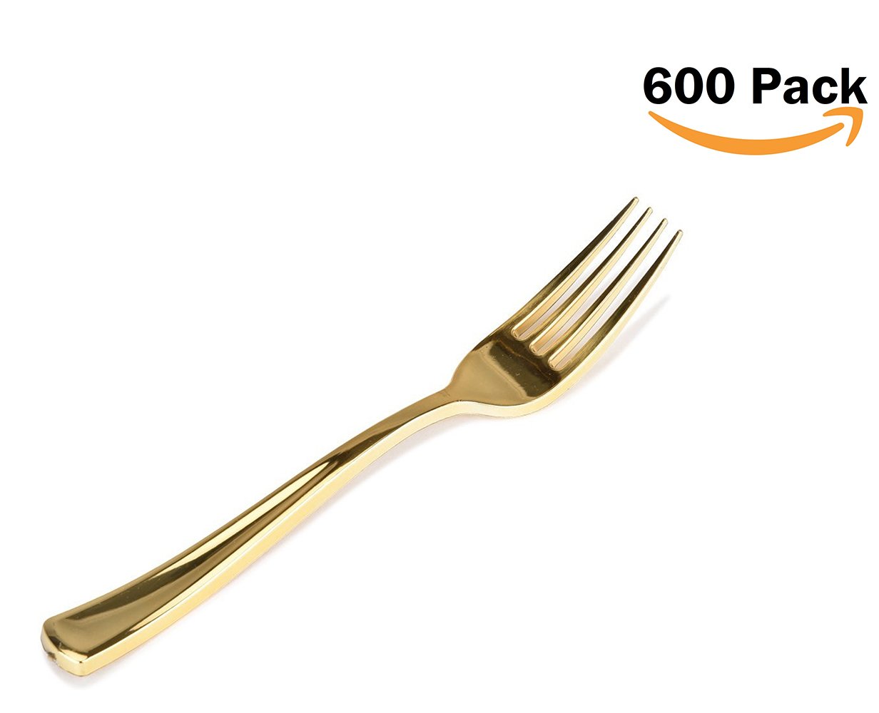Stock Your Home 600 Disposable Heavy Duty Gold Plastic Forks, Fancy