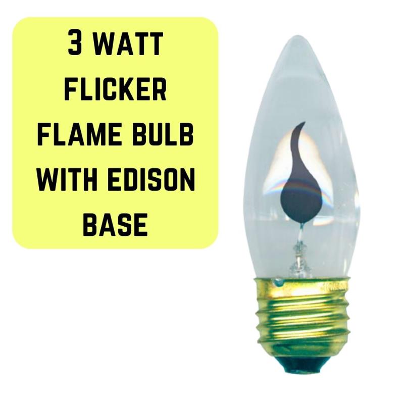 Candelabra Base Flickering Flame Light Bulb 3 Watt Light bulb Flame Bulb Candelabra Base Our classic frost or platinum lace candelabra base style bulbs will soften and create the lighting effect you desire. Unique flame shaped small light bulb flickers with a soft orange glow like a real candle flame! Beautiful candelabra (e12) base flame bulbs. Use these lovely flame bulbs in your outdoor lanterns or other decorative lighting fixtures. Ul rated for damp. Flame Bulb Candelabra Base.