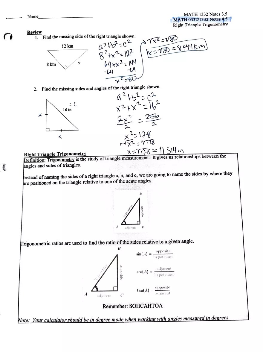 Right Triangle Trigonometry Notes Edubirdie