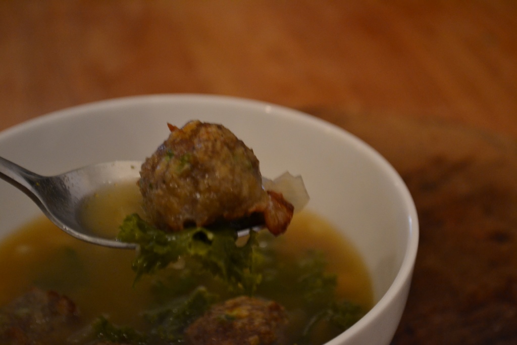 White Bean and Kale Soup with Jalapeño Sausage Meatballs Natalie Paramore