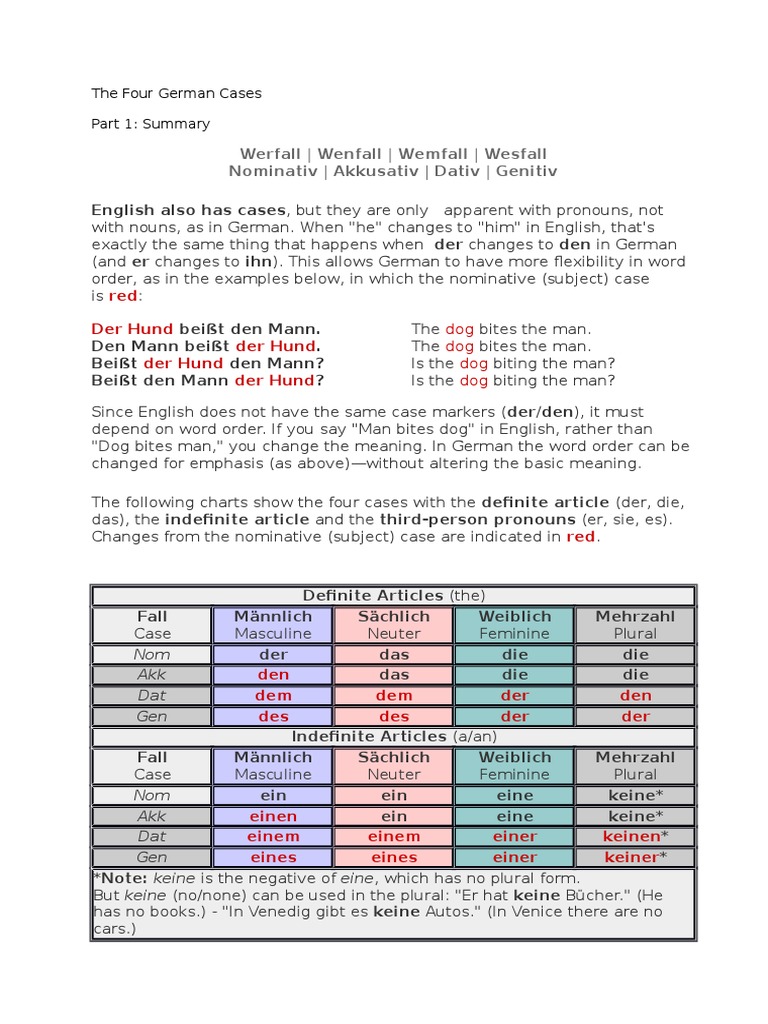 The Four German Cases PDF Grammatical Gender Preposition And