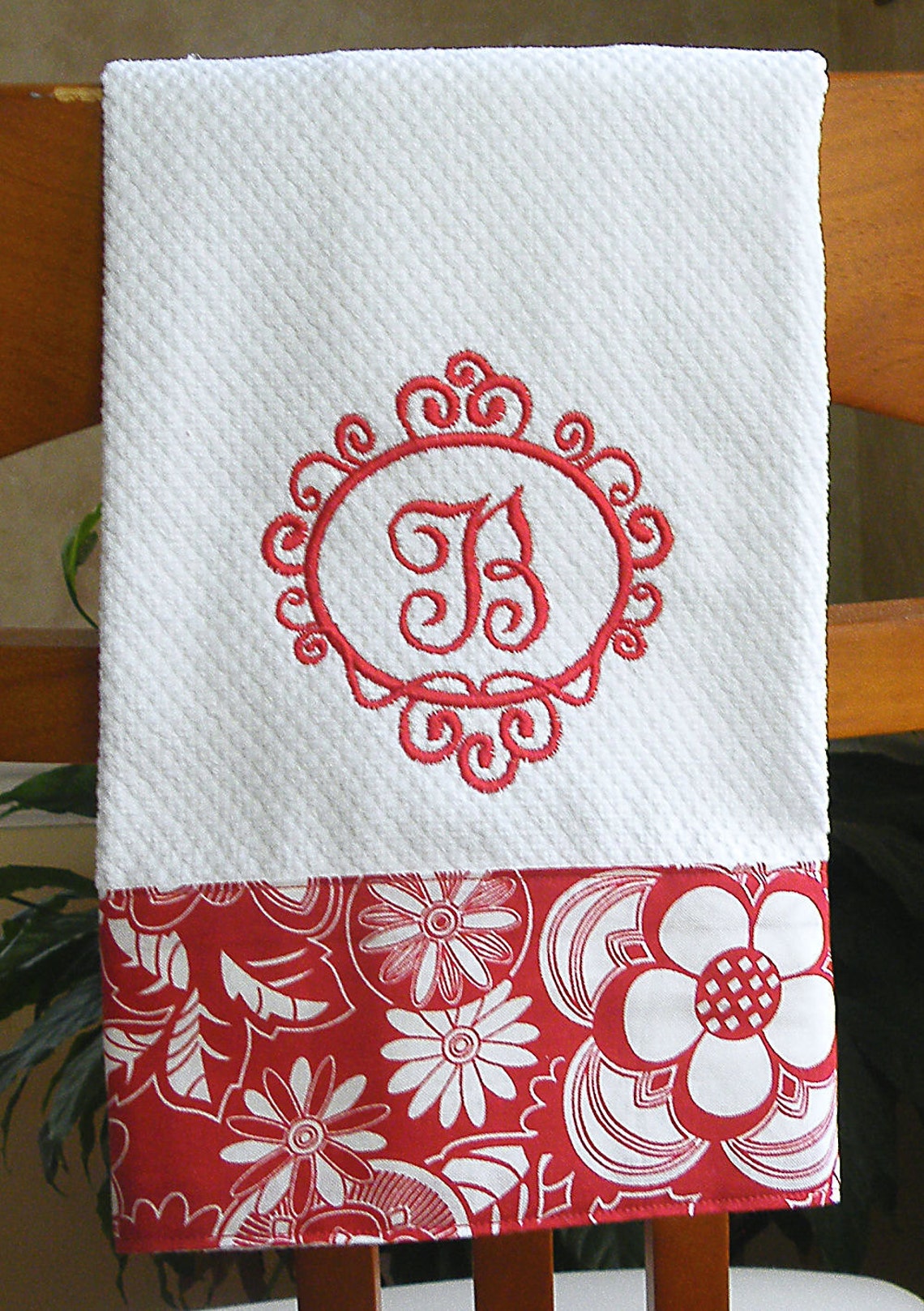 Monogrammed Kitchen Towel Personalized Dish Towel Red Floral Etsy