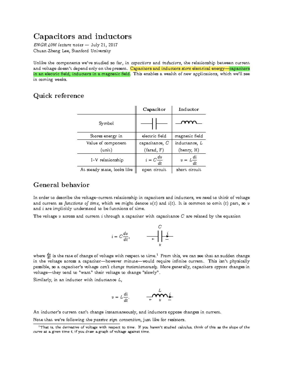 Capacitors and inductors Capacitors and inductors store electrical