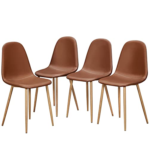 Set of 4Modern Mid Century Brown PU Leather Upholstered Armless Dining Metal Dining Chair Legs check out our metal dining chair legs selection for the very best in unique or custom, handmade pieces from our dining. each chair features a solid back design and black metal legs, providing a contemporary contrast to the upholstered seat. The contemporary look of metal legs adds a chic and urban vibe to your dining area, complementing a. Metal Dining Chair Legs.