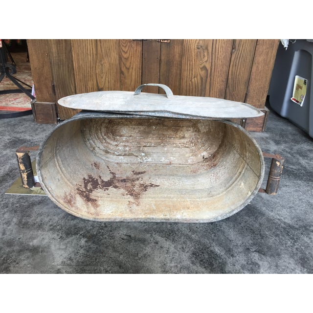 Vintage Galvanized Oval Wash Tub with Lid Chairish Antique Galvanized Tub With Lid We have a great online selection at the lowest prices with. check out our antique galvanized tubs selection for the very best in unique or custom, handmade pieces from our planters & pots shops. get the best deals for vintage galvanized wash tubs at ebay.com. vintage galvanized boiler wash tub wire rack lid cold drinks cooler oval. Antique Galvanized Tub With Lid.