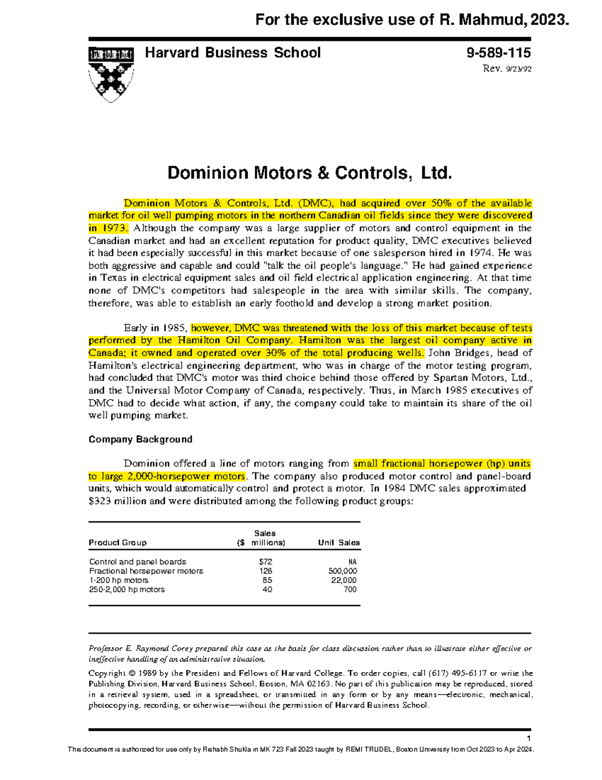 2.Dominion Motors Harvard case study 1 Harvard Business School 9 Dominion Motors And Controls Case Analysis The leading manufacturer of motors in canada is threatened by a loss of market share in. The company is at risk of losing market. the document summarizes a case analysis on dominion motors and controls ltd, a top engine manufacturer in canada. The leading manufacturer of motors in canada is threatened by a loss of market share in oilfield. Dominion Motors And Controls Case Analysis.