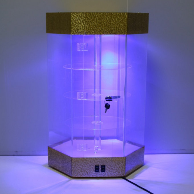 Beautiful Rotatable Acrylic Display Stands Rack Yellow Base Lockable