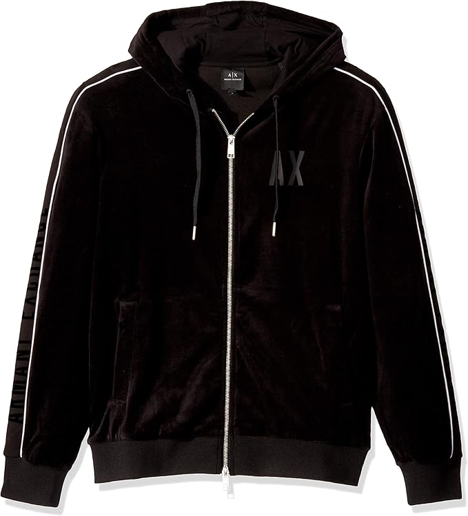 AX Armani Exchange Men's Velour Zip Up Hoodie Sweater, Black, XXL at