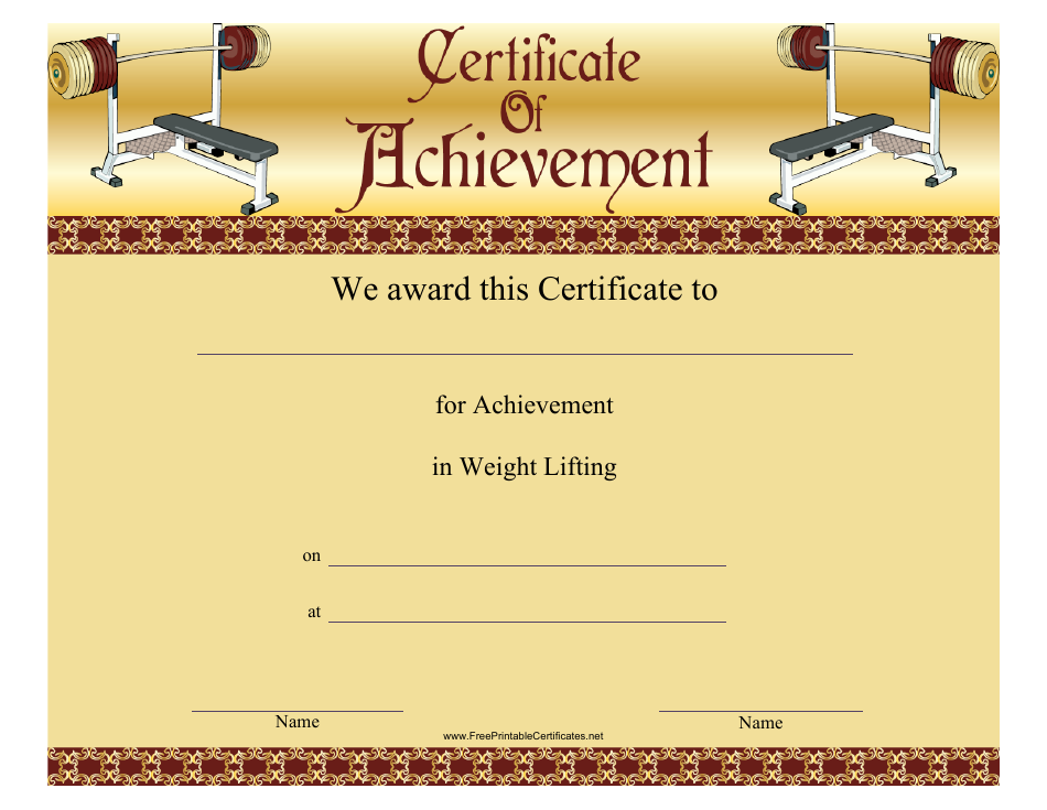 Weight Lifting Certificate of Achievement Template Download Printable