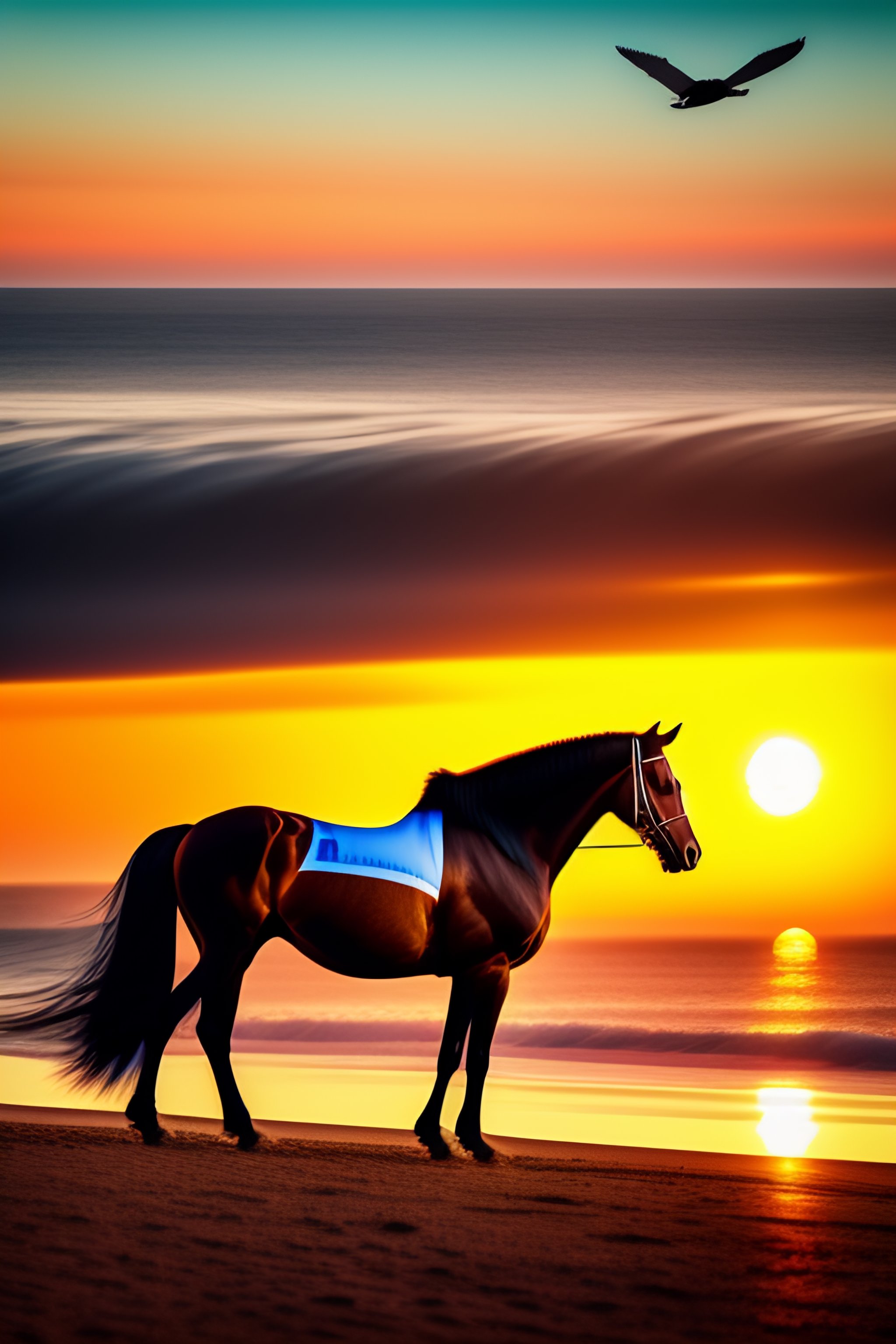 Lexica Sunset, horse, sea, eagles, supercar
