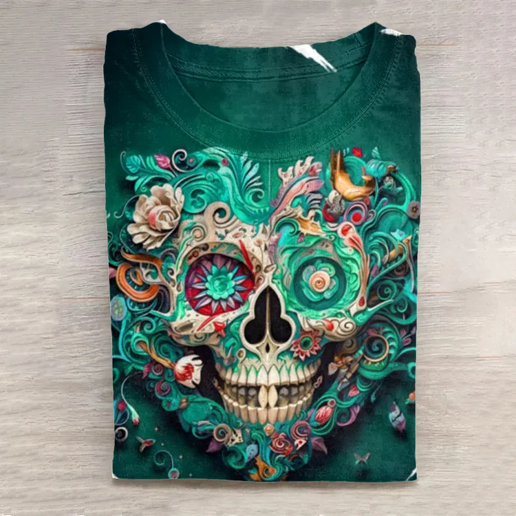Comstylish Day Of The Dead Gradient Skull Print ShortSleeved TShirt