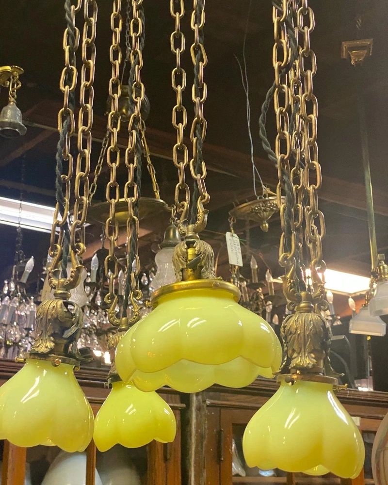 Vintage Vaseline Glass Uranium Glass Chandelier