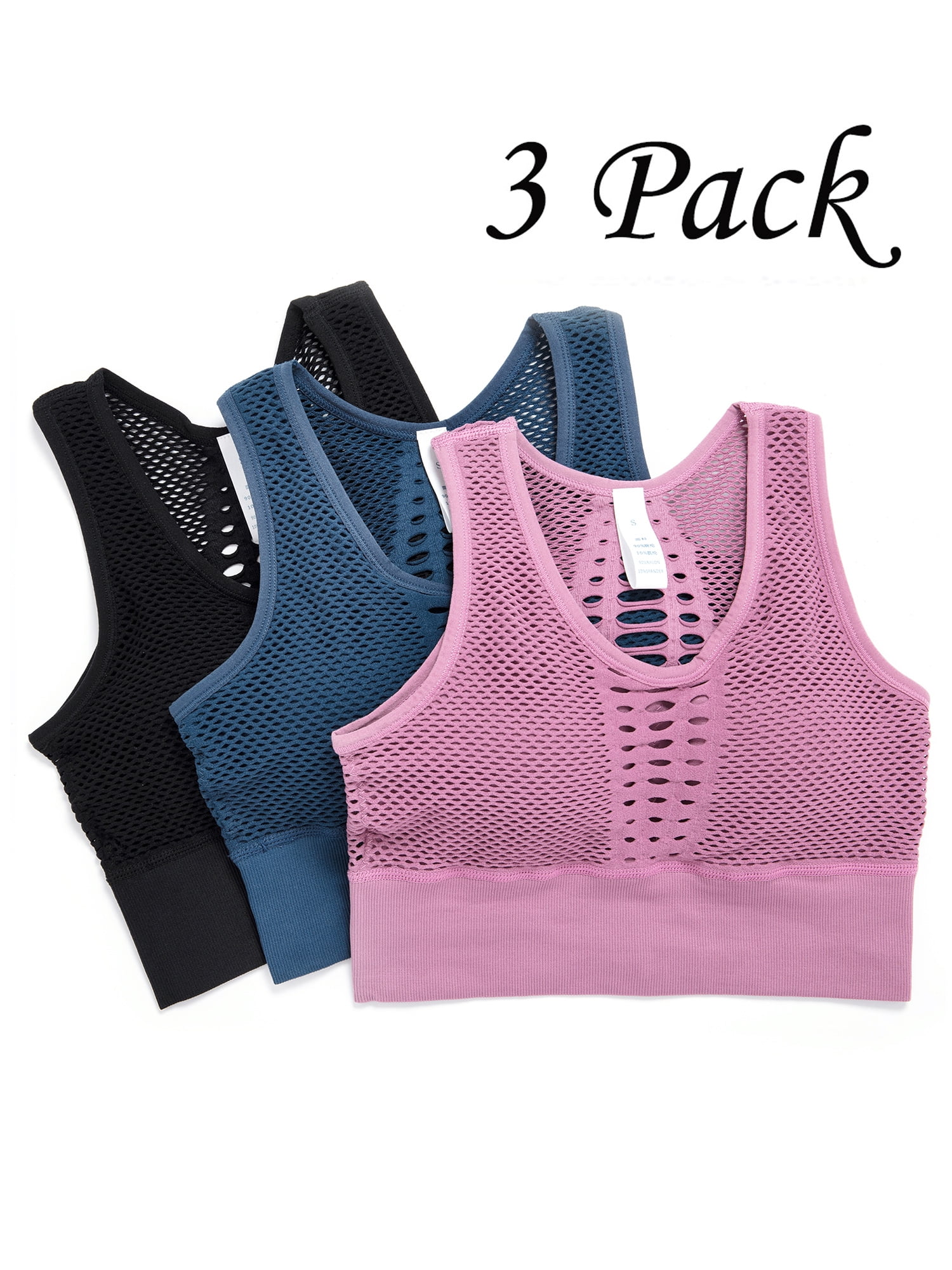3 Pack of Sexy Hollow Racerback Sports Bra Womens Yoga Sports Bra for