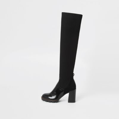 Black over the knee ribbed sock boots River Island