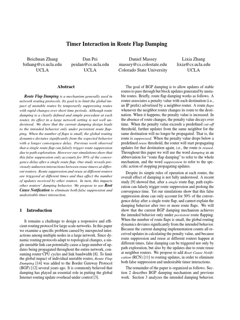 Timer Interaction in Route Flap Damping PDF Routing Network Protocols