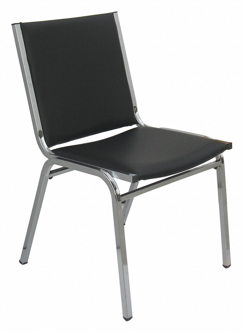Chrome Steel Stacking Chair with Black Seat Color, 1EA Grainger