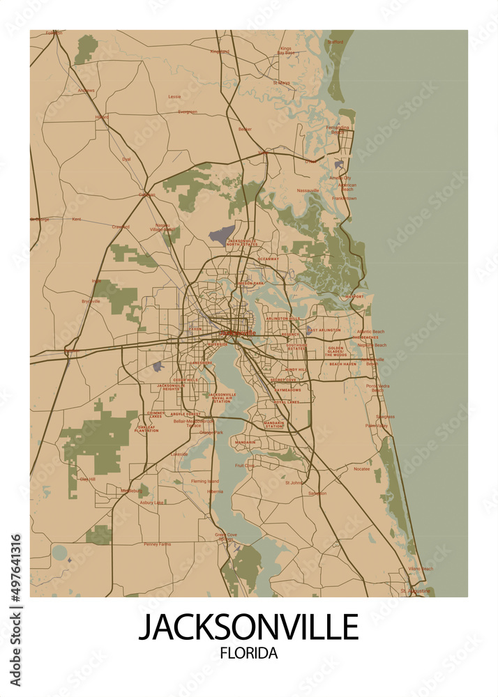 Poster Jacksonville Florida map. Road map. Illustration of