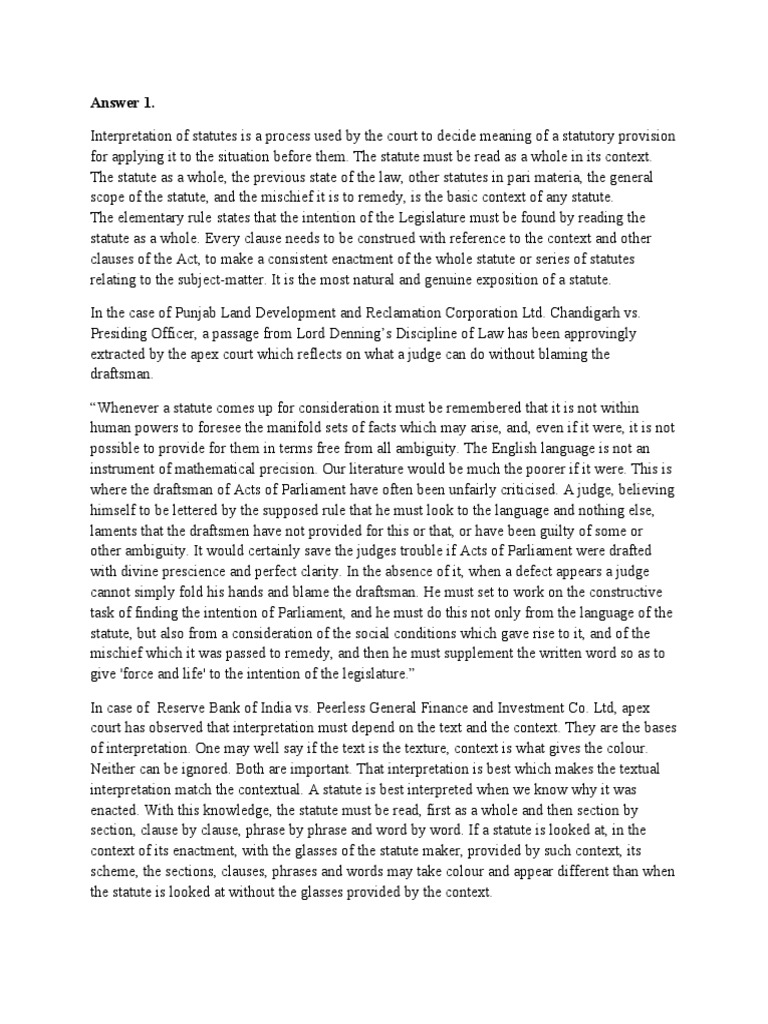 Interpretation of Statutes PDF Statutory Interpretation Crime