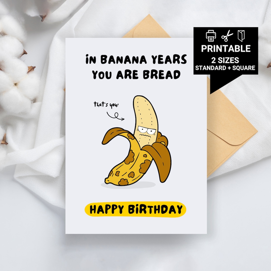 Printable Birthday Card in Banana Years You Are Bread Best Etsy