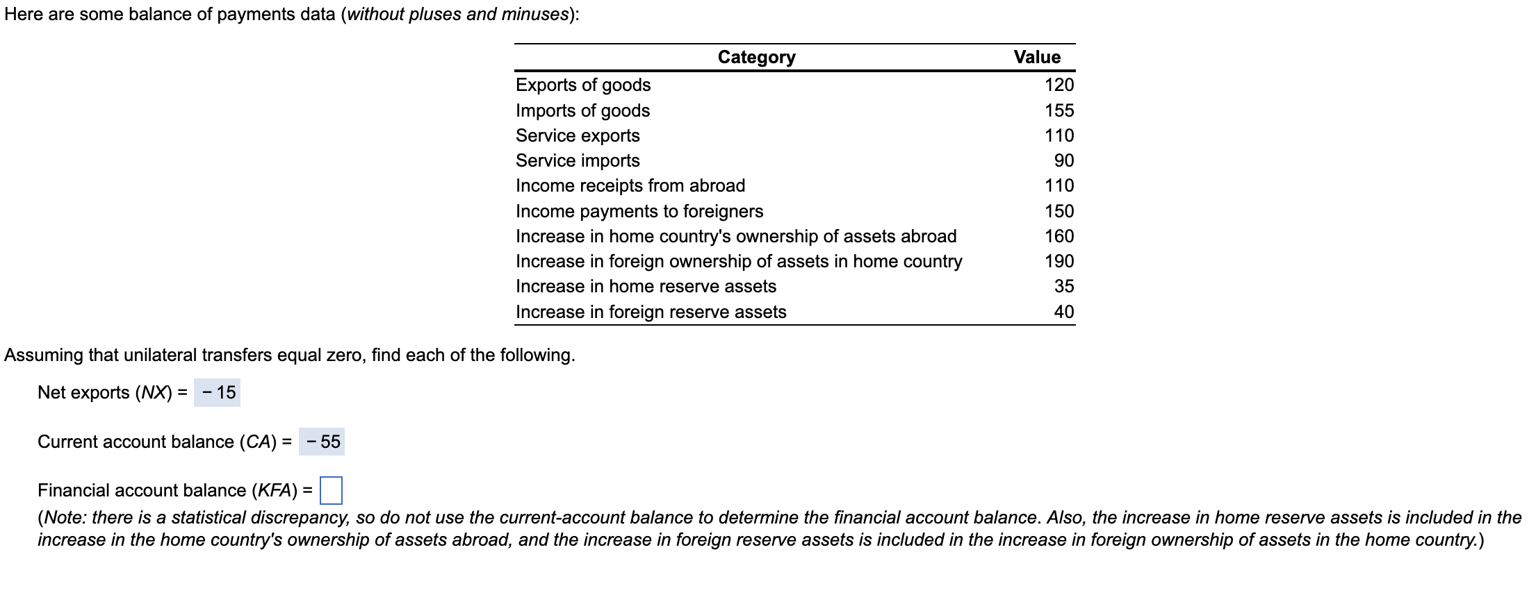 Solved ssuming that unilateral transfers equal zero, find