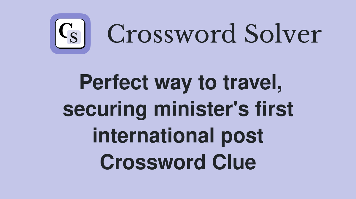 Perfect way to travel, securing minister's first international post Crossword Clue Answers
