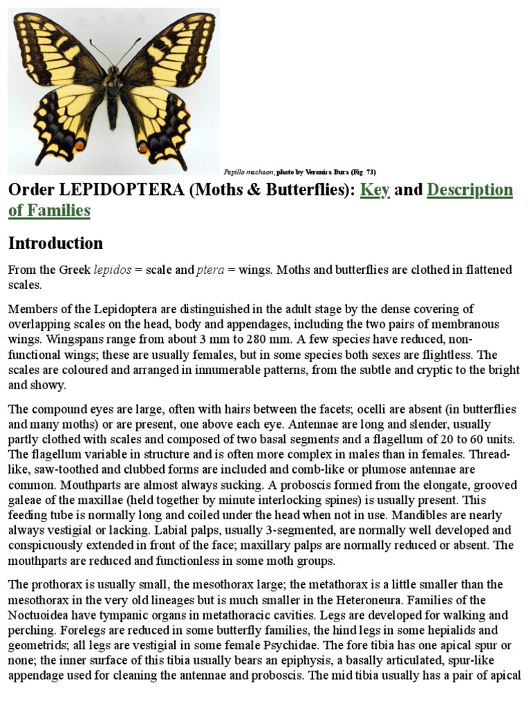 Order LEPIDOPTERA (Moths & Butterflies) And Key Description of Families PDF Lepidoptera