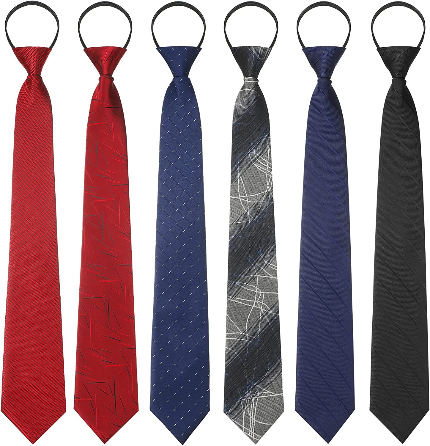QWZNDZGR 6 Pcs Zipper Ties Adjustable Men's Pretied Ties Set Neckties Classic Silky Skinny Ties