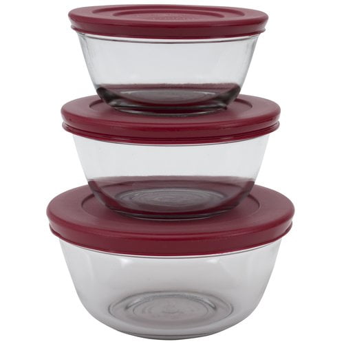 Anchor Hocking Glass Mixing Bowls with Red Lids, 6 Piece