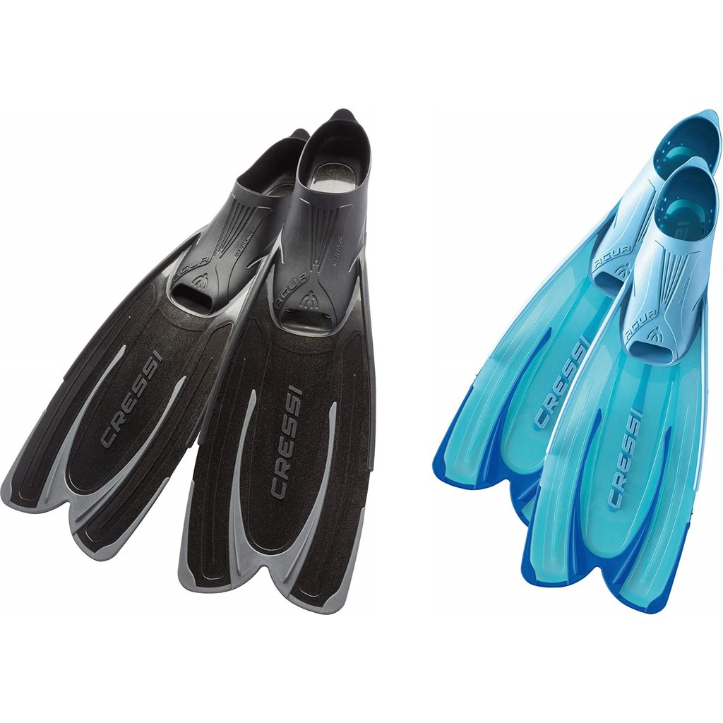Buy Cressi Agua Long Blade Dive Fins Blue online at MarineDeals.co.nz Cressi Agua Diving Fins Versatile short adjustable fins for snorkeling and scuba diving. Regulator ideal for experienced or professional divers. The foot pocket is made using the last technology, called self adjusting. A light fin that guarantees an excellent performance without tiring your feet. Cressi Agua Diving Fins.