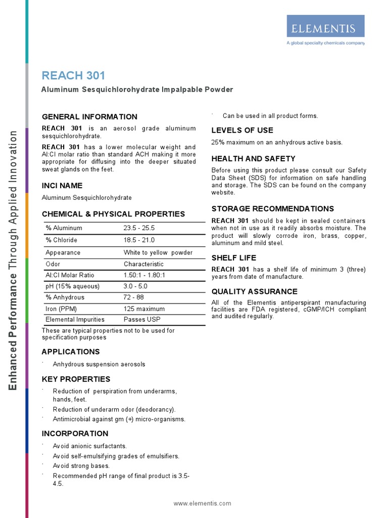 REACH 301 Aluminum Sesquichlorohydrate Impalpable Powder PDF