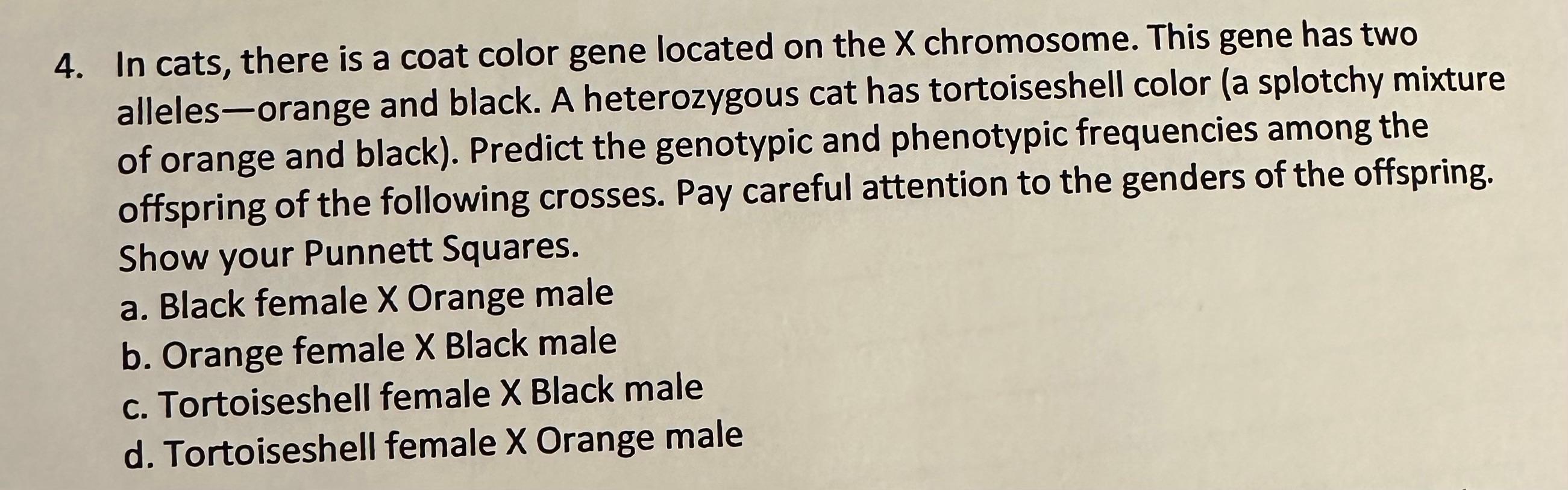 Solved 4. In cats, there is a coat color gene located on the