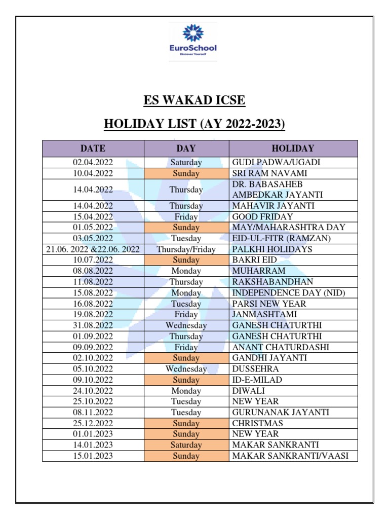 Holiday List 202223 1241132555671965705.SD PDF PDF Holidays