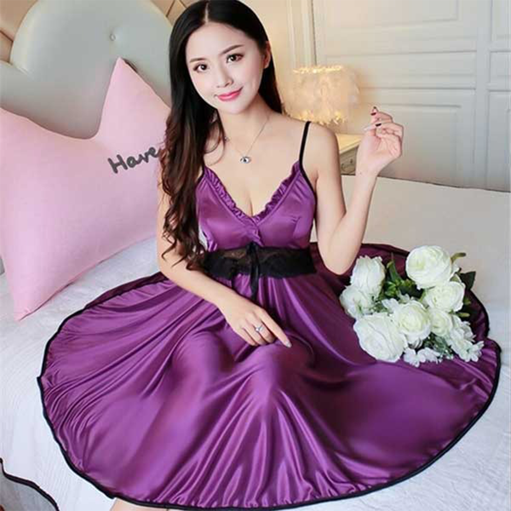Silk Satin Sleepwear Night Dress With Panty Purple ND47