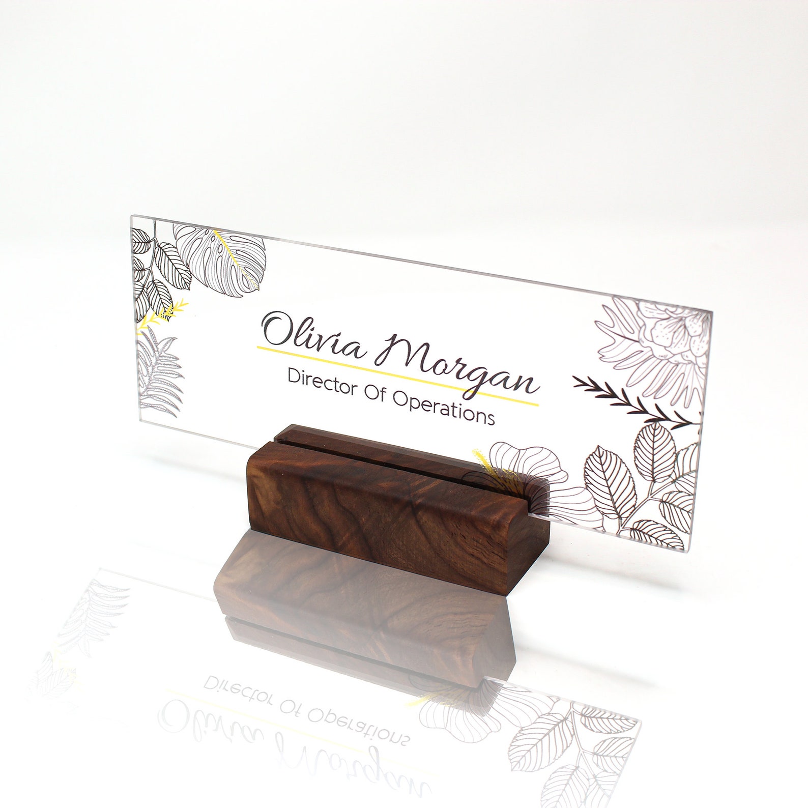 Customizable Acrylic Desktop Name Plate Featuring Floral Design and
